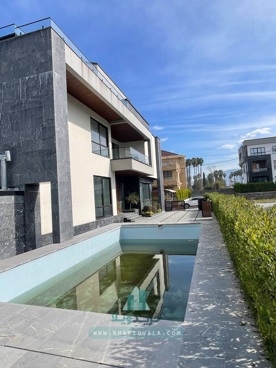 این ویلا تریبلکس با ۶۶۰ متر زیربنا و ۸۱۰ متر زمین در یک شهرک ۳ هکتاری در منطقه لتینگان نوشهر واقع شده است. شهرک در محدودهای نزدیک به جاده ساحلی قرار دارد و به دلیل فاصله کوتاه تا مرکز شهر نوشهر، از نظر دسترسی موقعیت مناسبی دارد. ویلا از نظر مدارک حقوقی دارای سند ششدانگ، مجوز ساخت و پایانکار است. وجود استخر چهار فصل، آسانسور و روفگاردن با چشمانداز همزمان دریا و جنگل در کنار کیفیت مناسب متریال ساخت، این ویلا را به گزینهای قابلتوجه در شهرکهای منطقه لتینگان تبدیل کرده است.