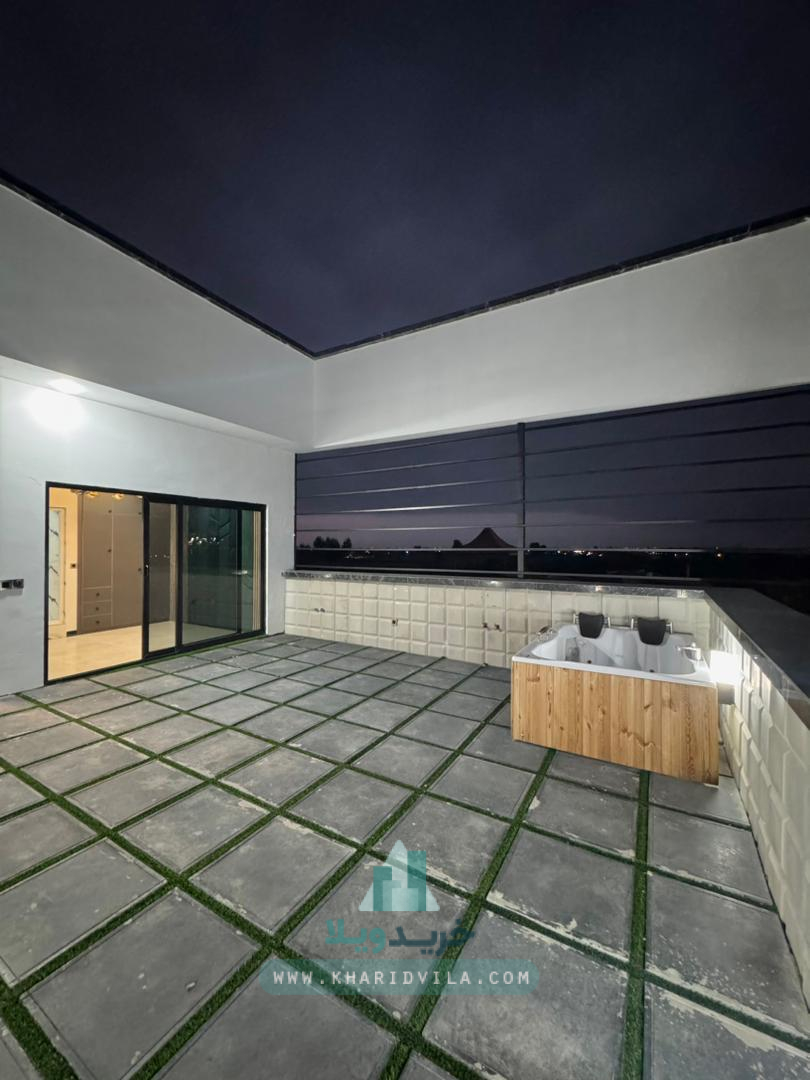از جمله ویژگیهای برجسته این ویلا میتوان به استخر چهارفصل، جکوزی واقع در روف گاردن، آتشکده، آبنما و سیستم هوشمند اشاره کرد که تجربهای لوکس و متفاوت از زندگی در دل طبیعت را فراهم میآورد. این ویلا در یک شهرک با نگهبانی ۲۴ ساعته قرار دارد که امنیت و آرامش را برای ساکنان به ارمغان میآورد.